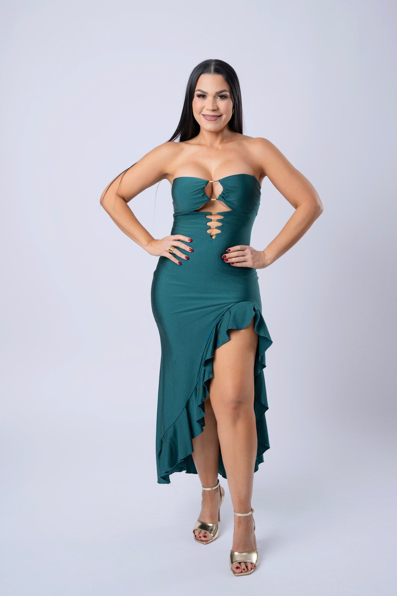 Ruffle Front Open Dress Cut Out Detailing.