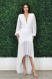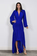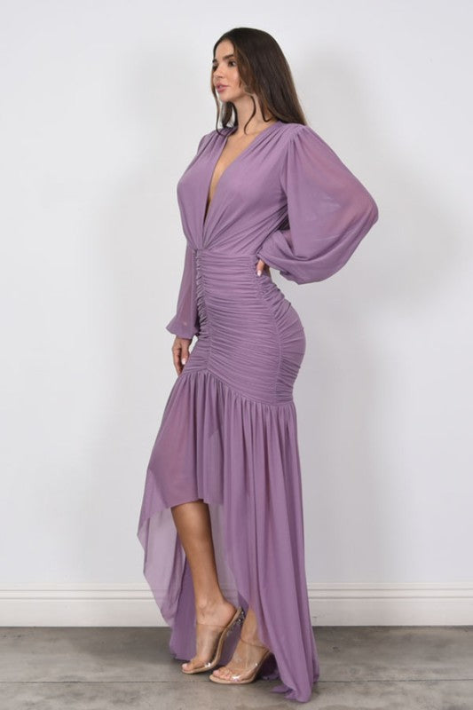 Rushed Mesh Long Sleeve High- Low Dress.
