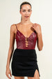 Deep Plunge Pintuck Detail Spaghetti Strap Bodysuit.