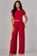 Short-Sleeved Top And Pants Set With Wrinkled Pleats.