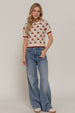 Short Sleeve Contrasting Edge Line Detail Cherry Pattern Sweater.