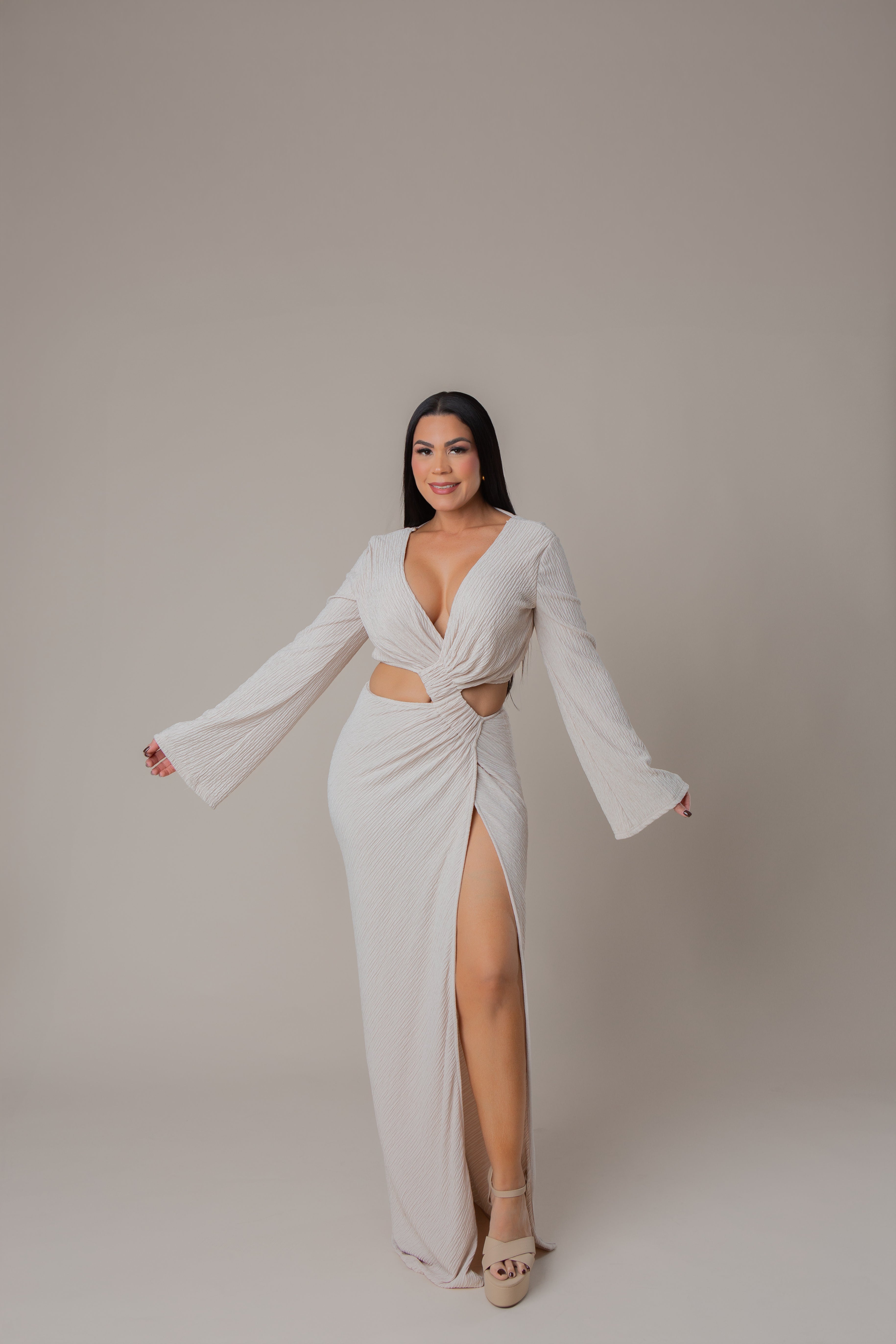 Surplice Cutout Bell Sleeve Maxi Dress.