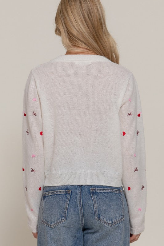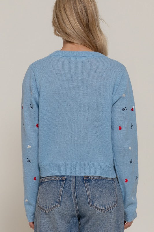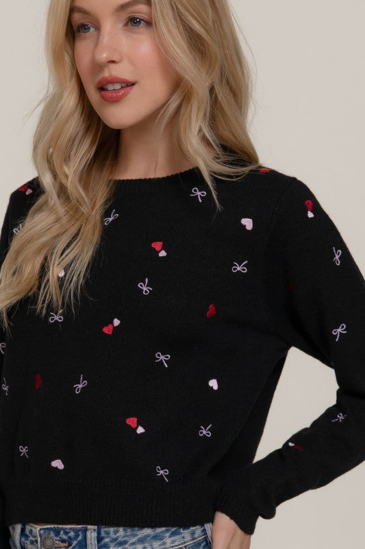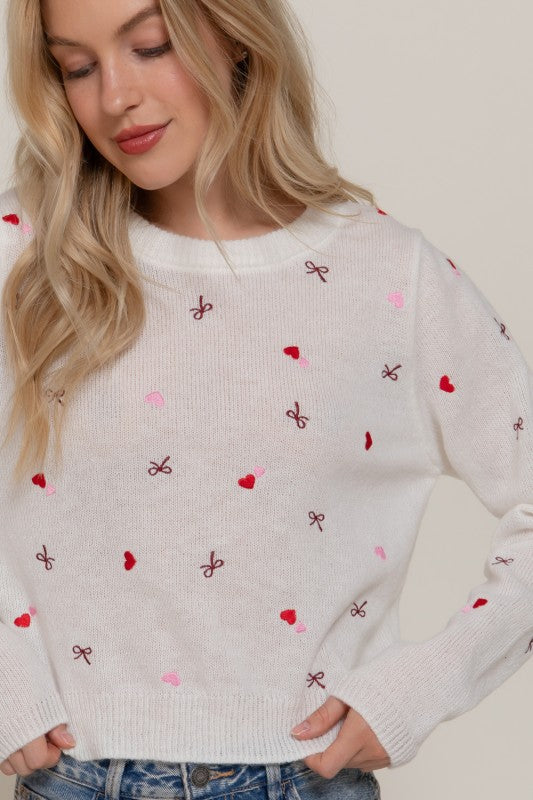 Long Sleeve Round Neck All Over Embroidery Sweater.