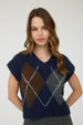 Argyle Pattern V Neck Sleeveless Sweater Vest.