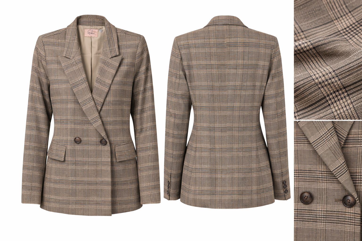 Plaid Collared Long Sleeve Blazer.