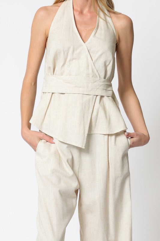 Halter Smocked Back Chest Top & Long Pants Set.