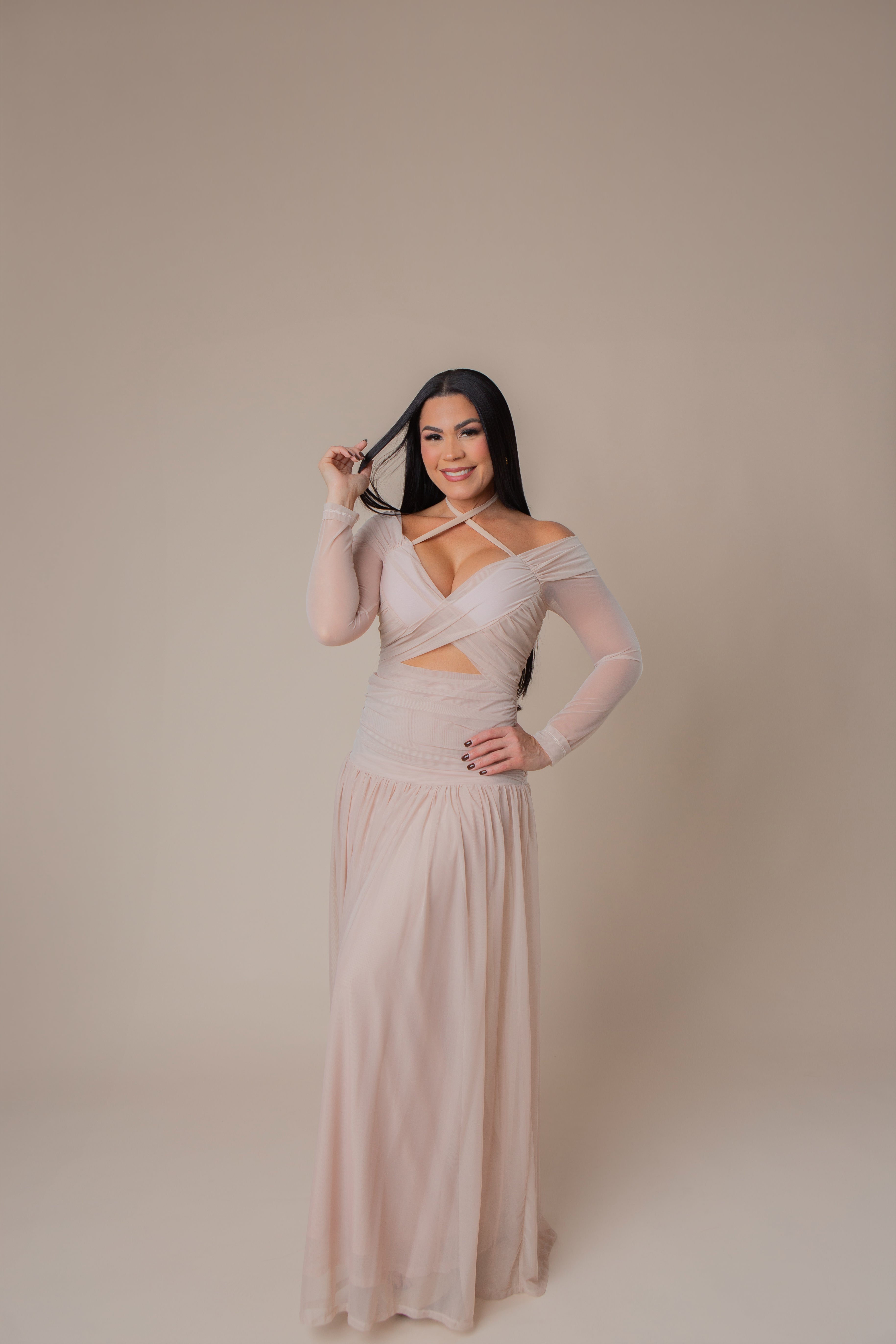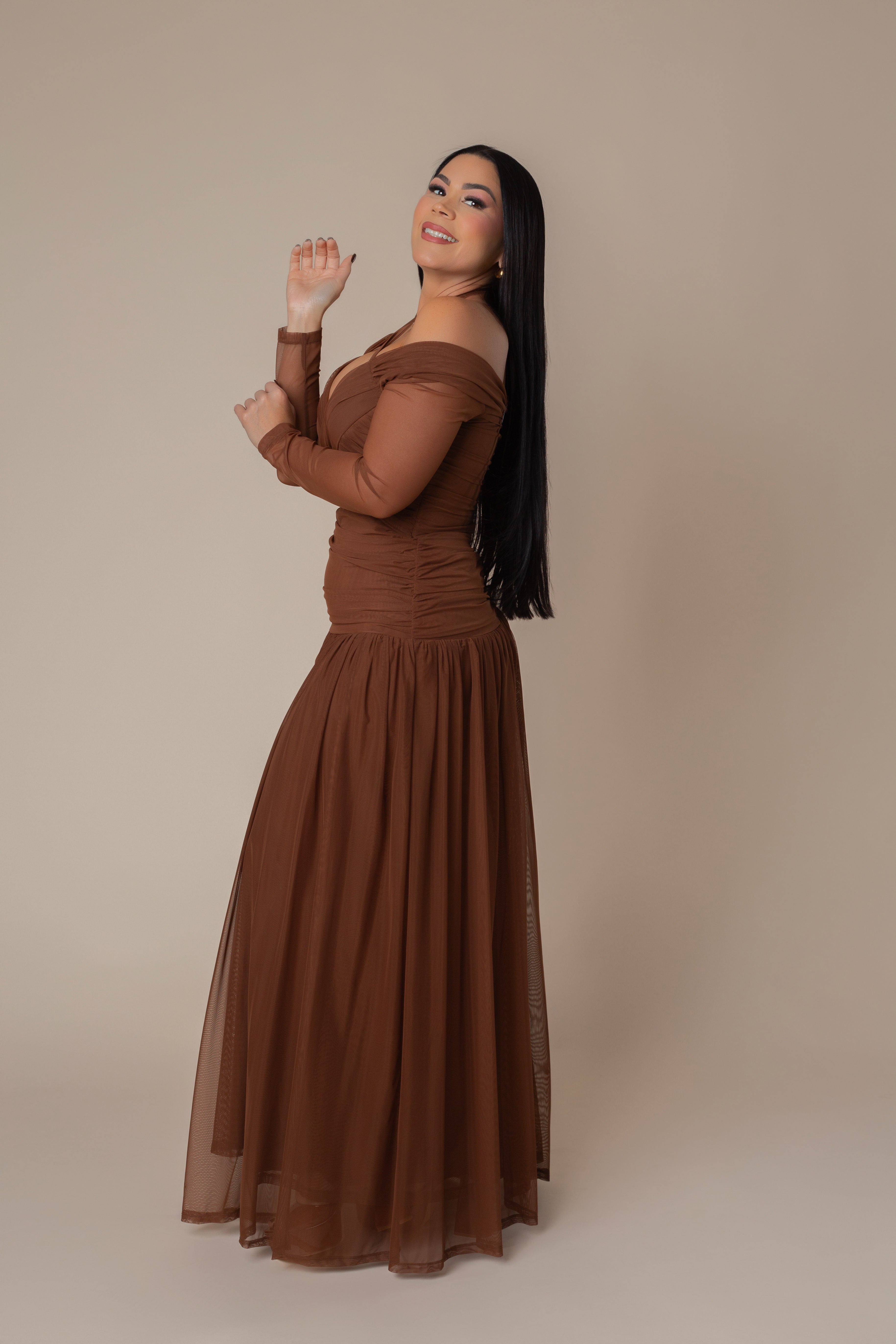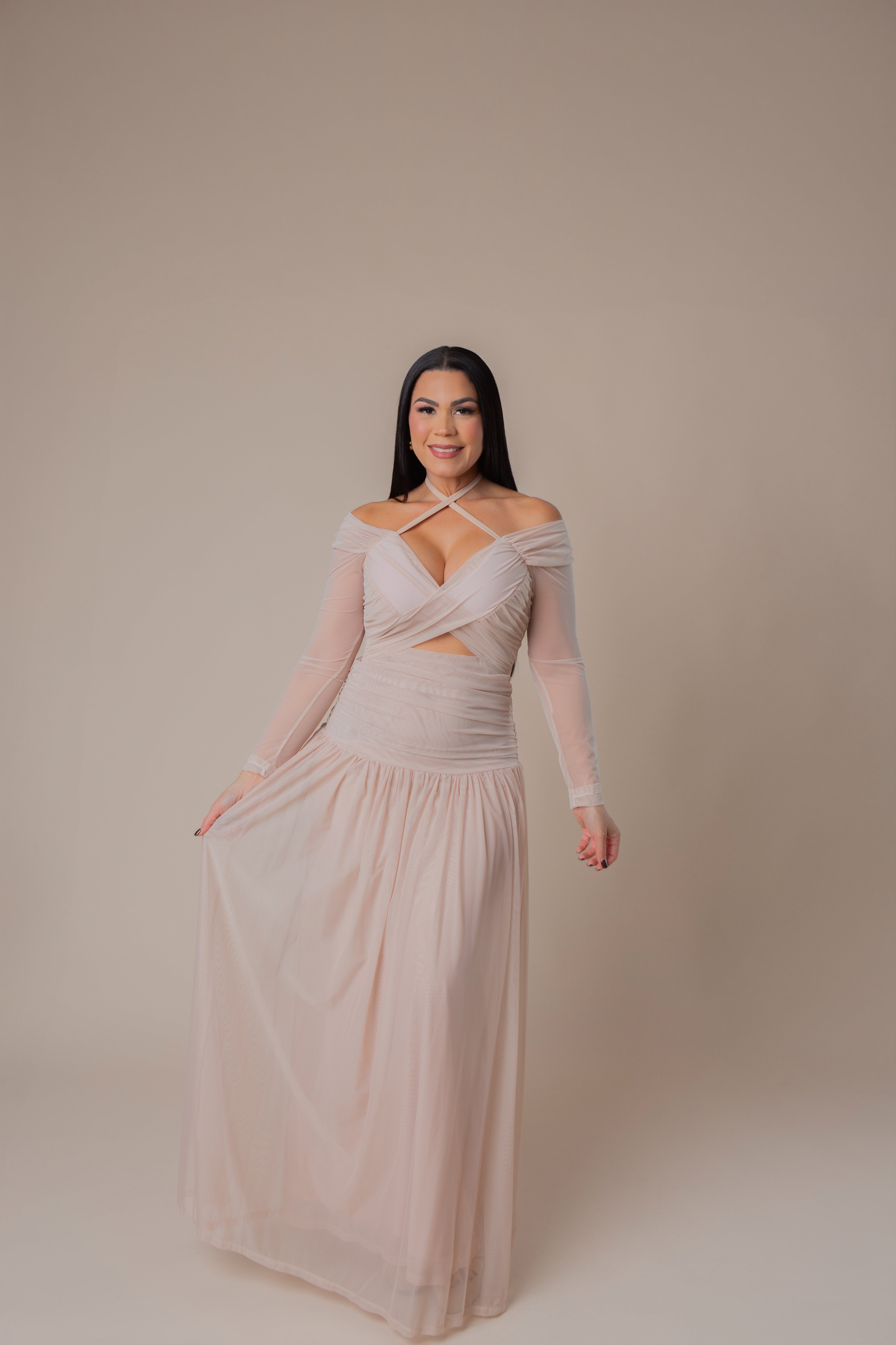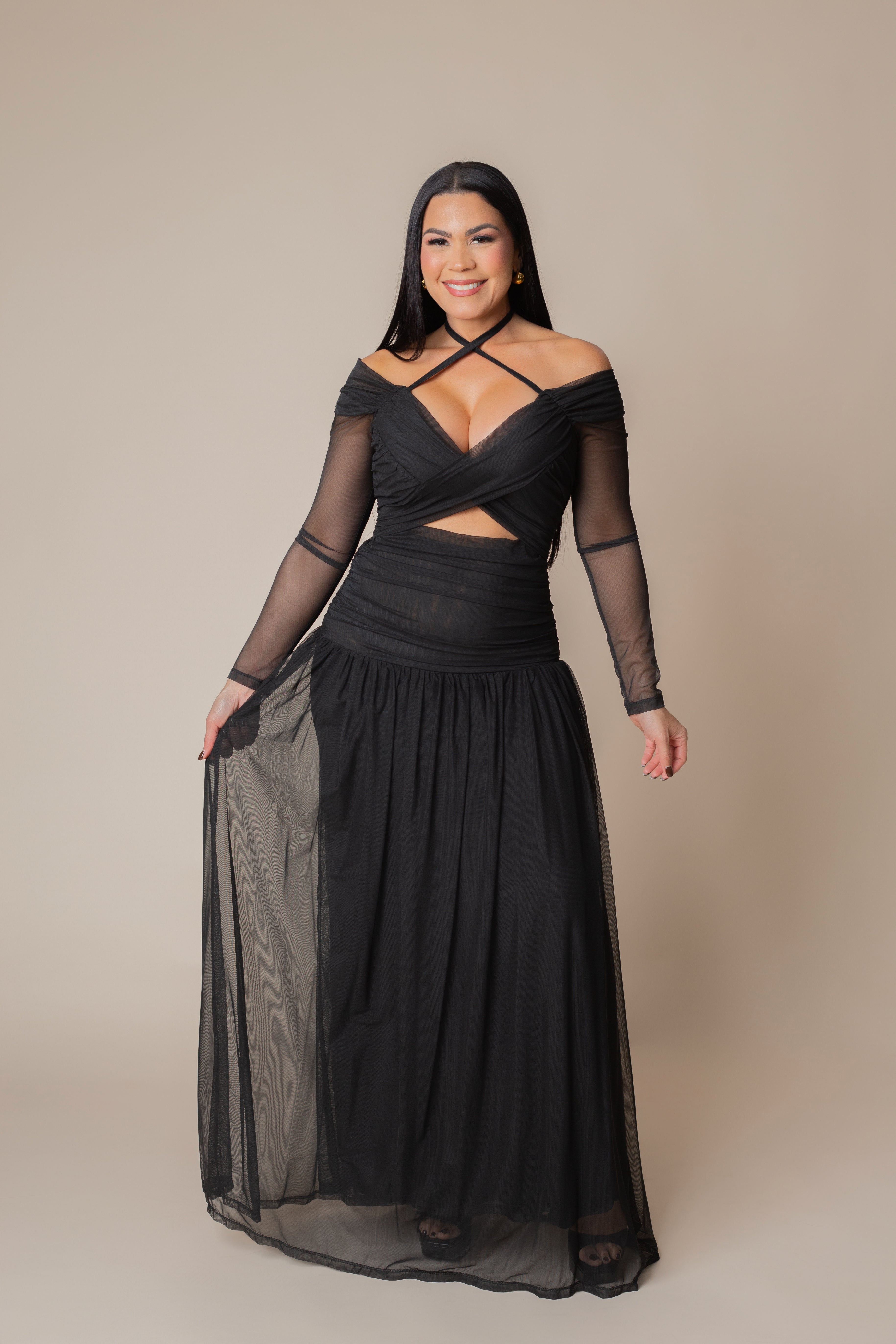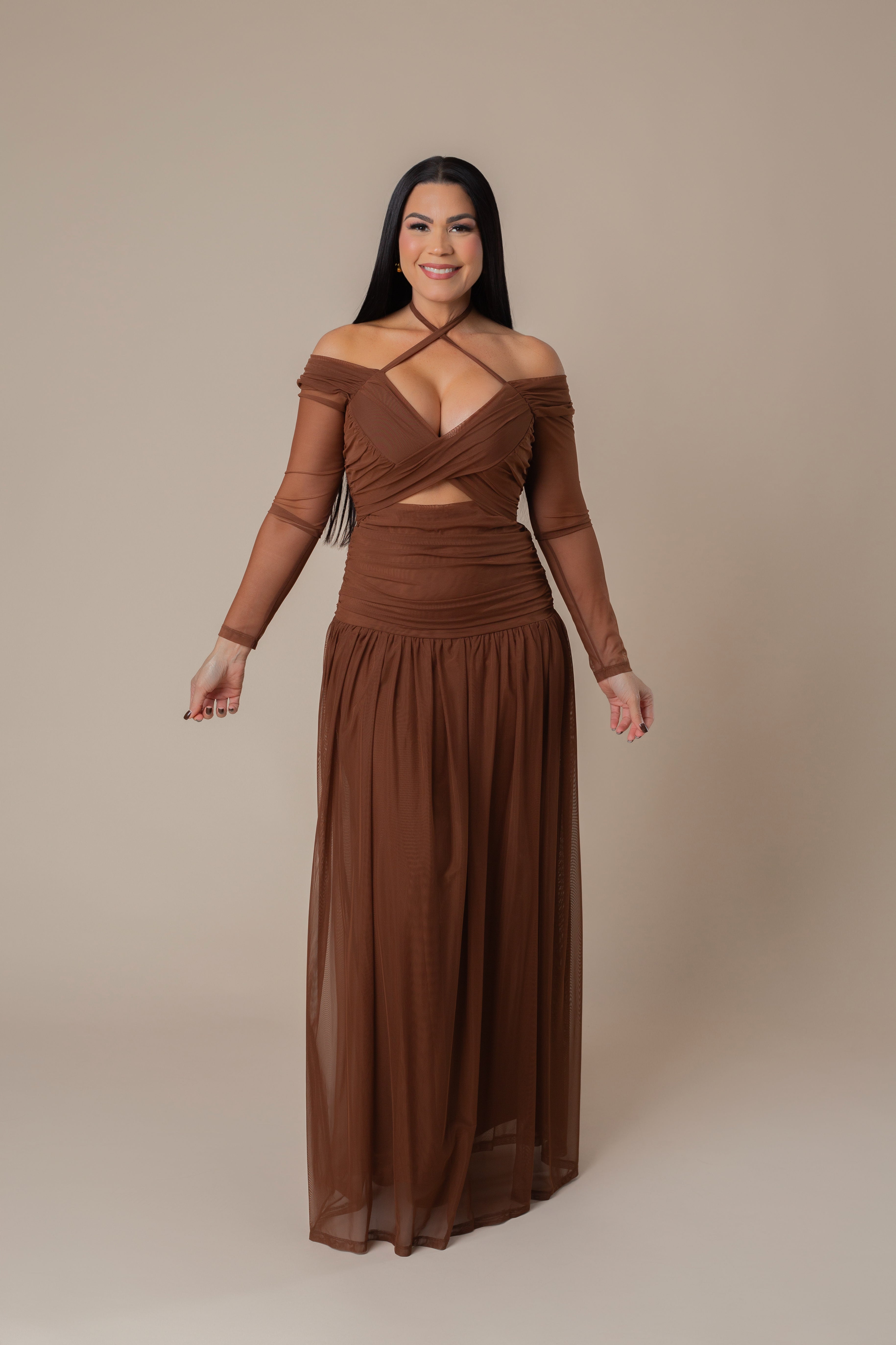 Long Sleeve Draped Maxi Dress.
