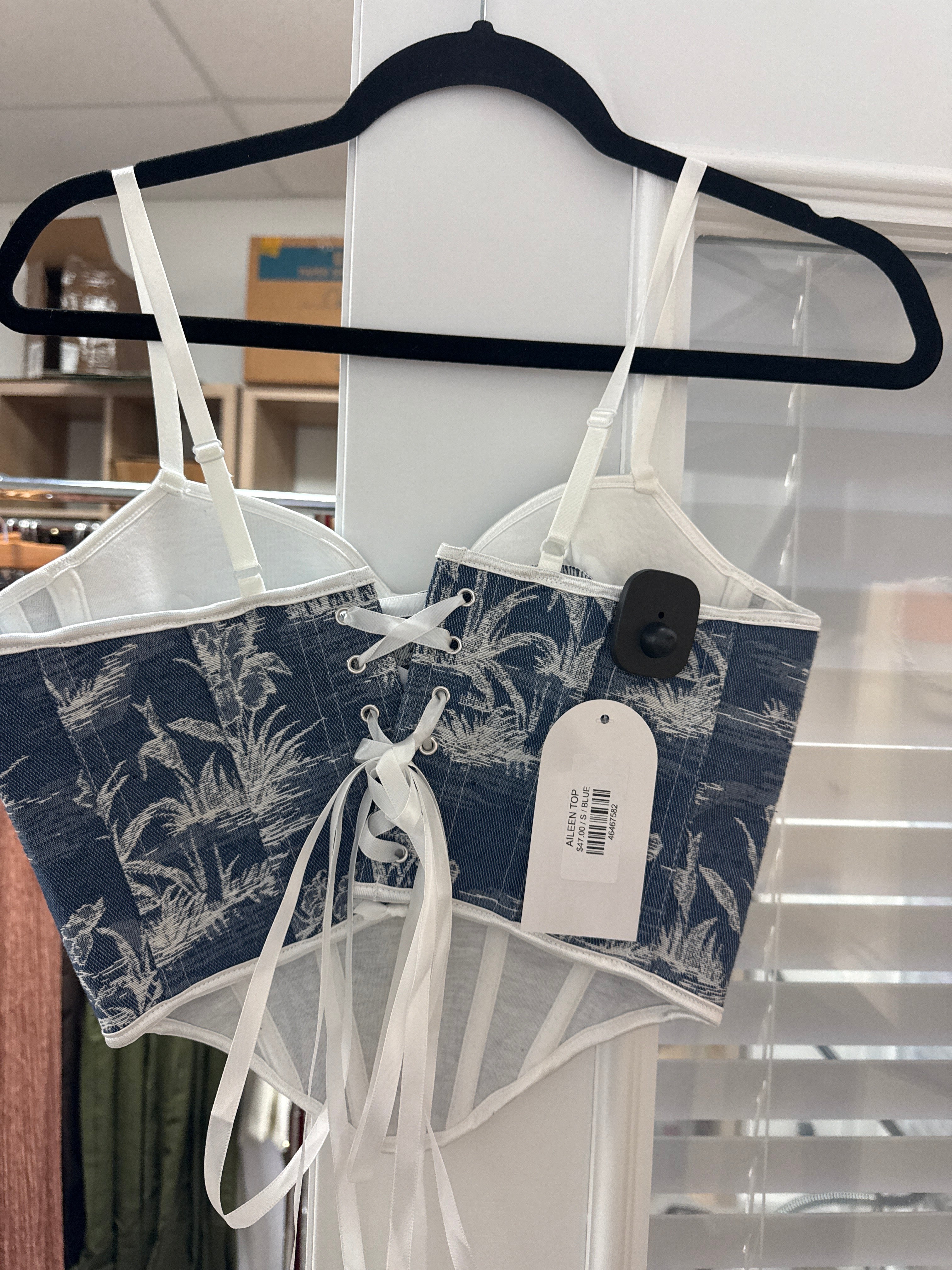 Denim Corset Top With Bra Cups, Adjustable Straps.