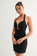 Fitted Mini Dress With A Sculpted Halter Neckline, Button Closure At The Back, Deep V-Neck And Concealed Back Zipper.