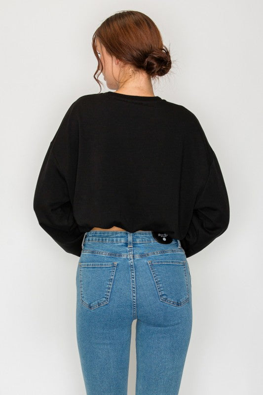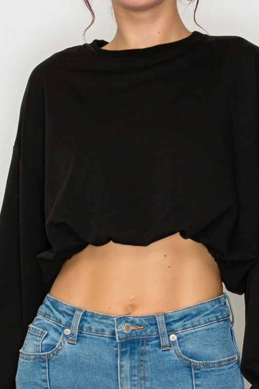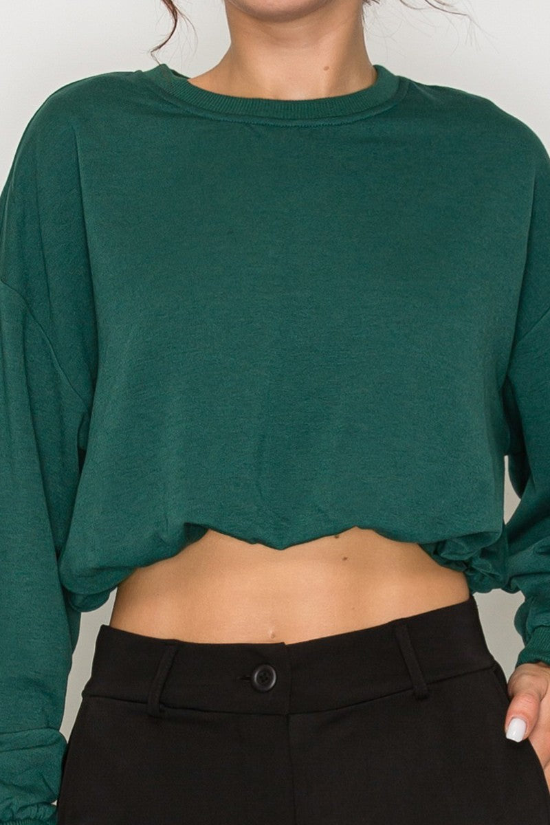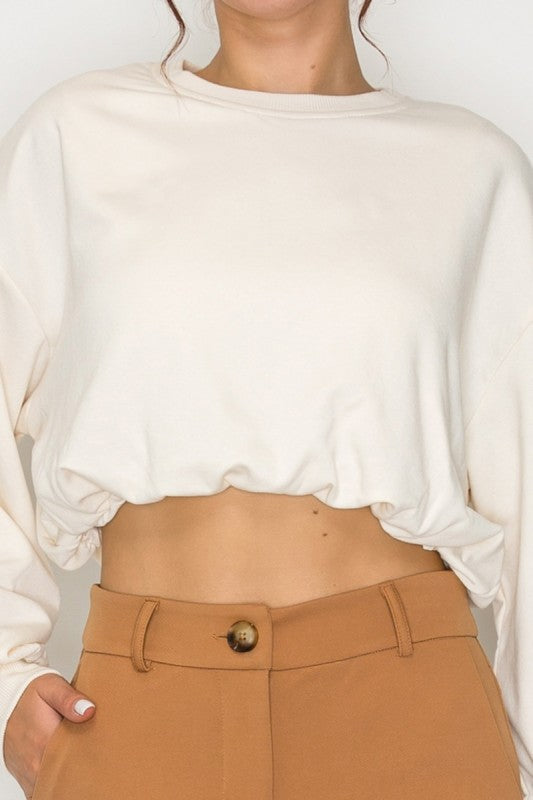 Sweatshirt Top In A Solid Color Featuring Long Sleeves, A Round Neckline, An Elasticized