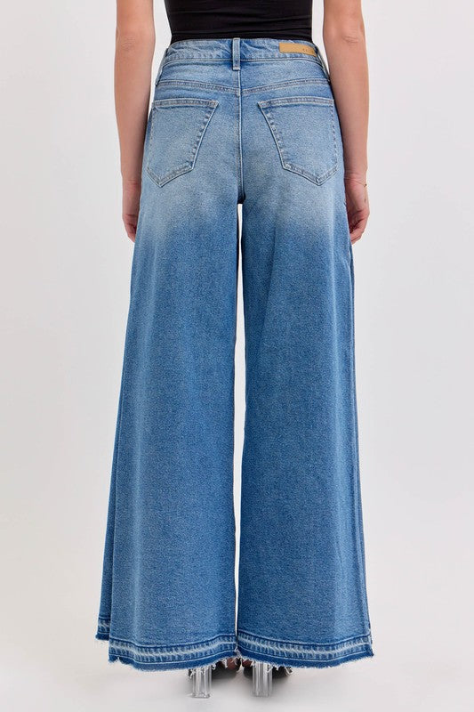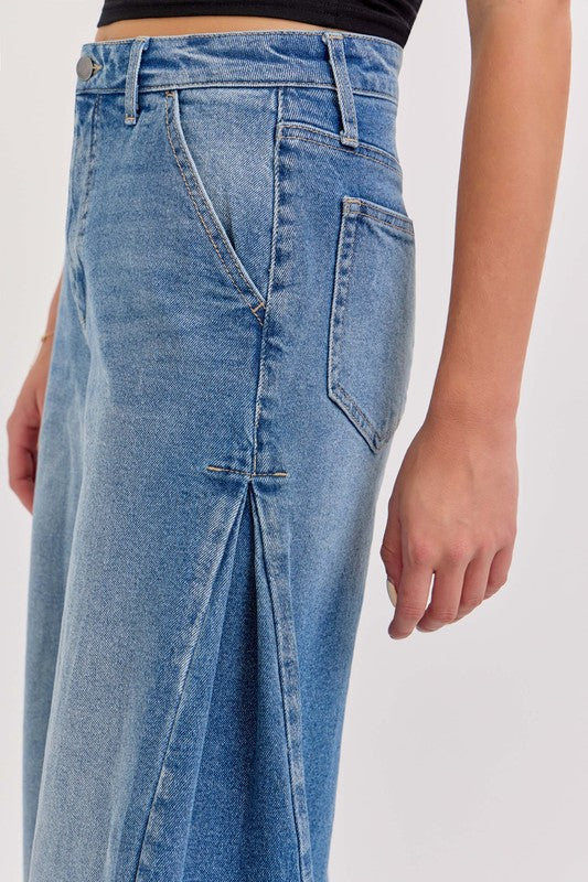 High Rise Wide Leg With Side Triangular Tuck Jeans.