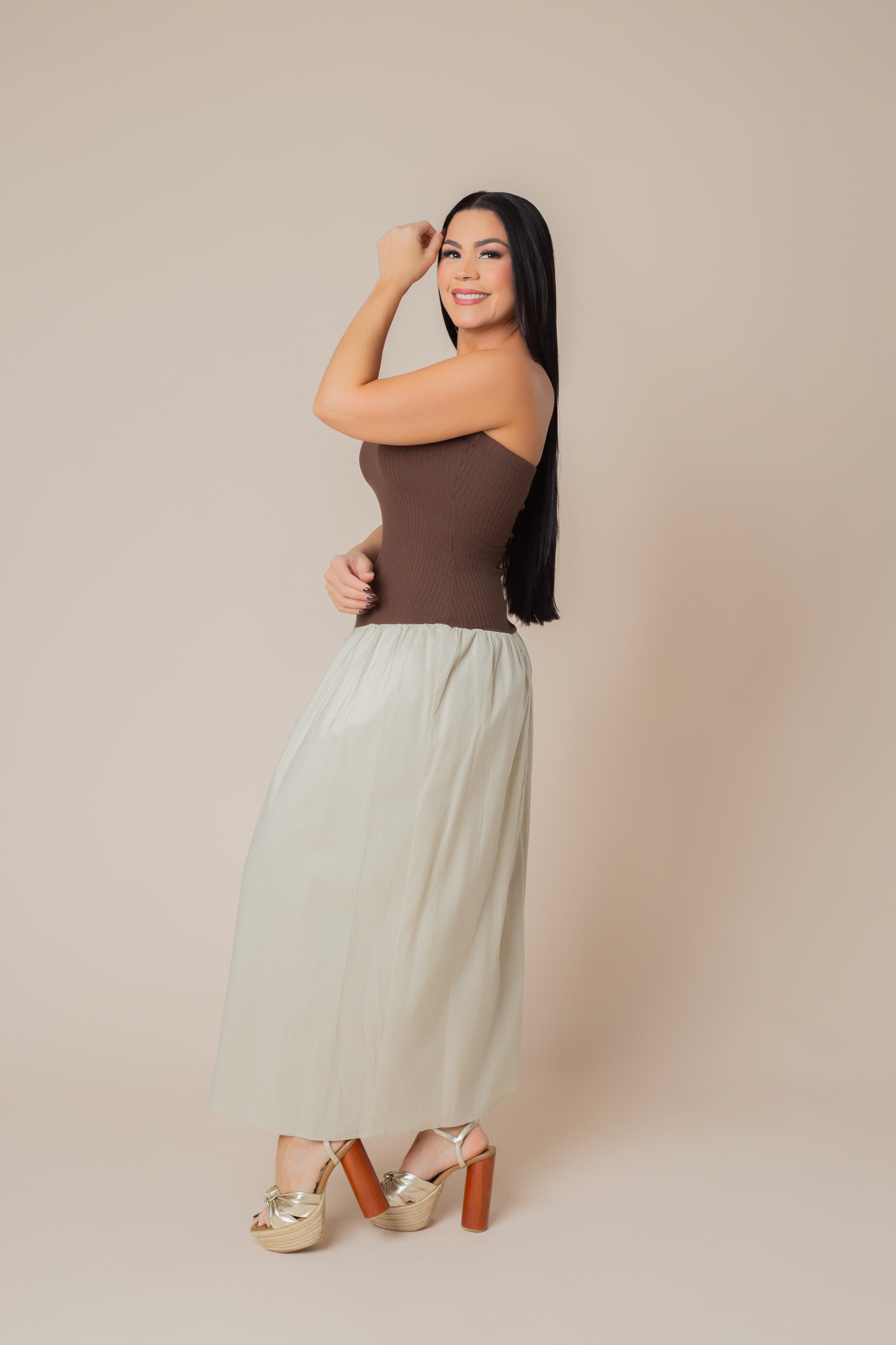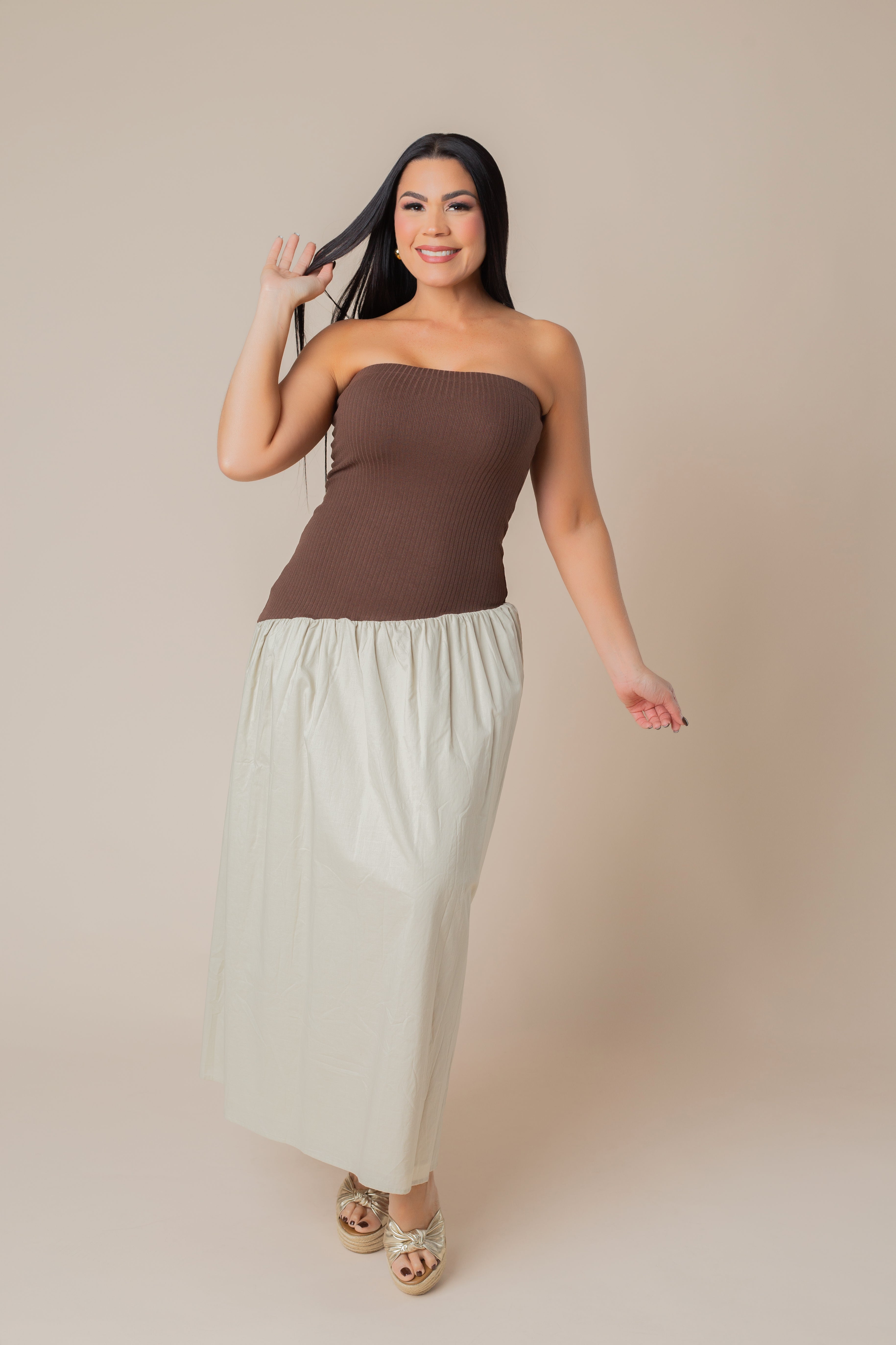 Ladies Knit Contrast Asymmetrical Draped Tube Dress.