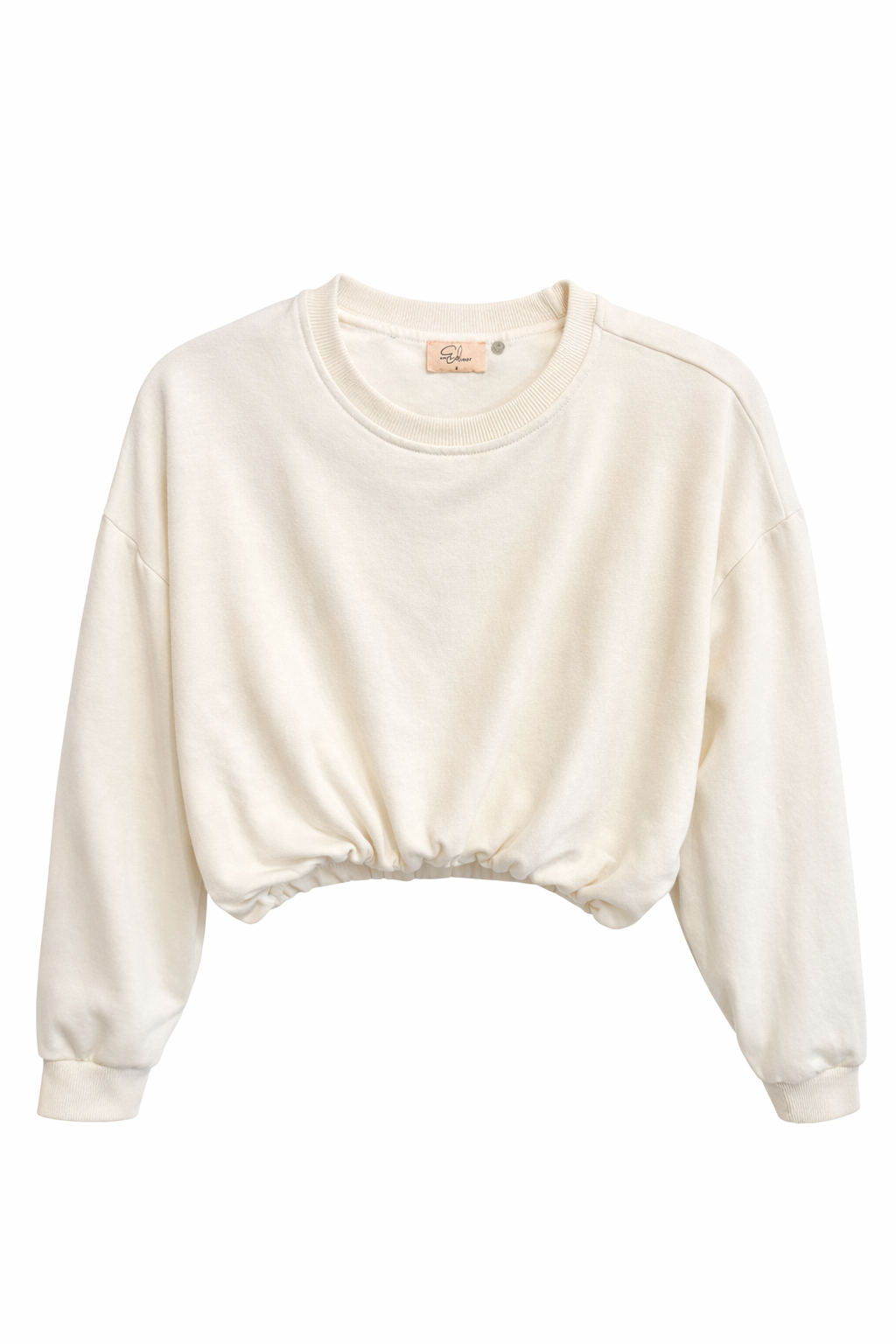 Sweatshirt Top In A Solid Color Featuring Long Sleeves, A Round Neckline, An Elasticized