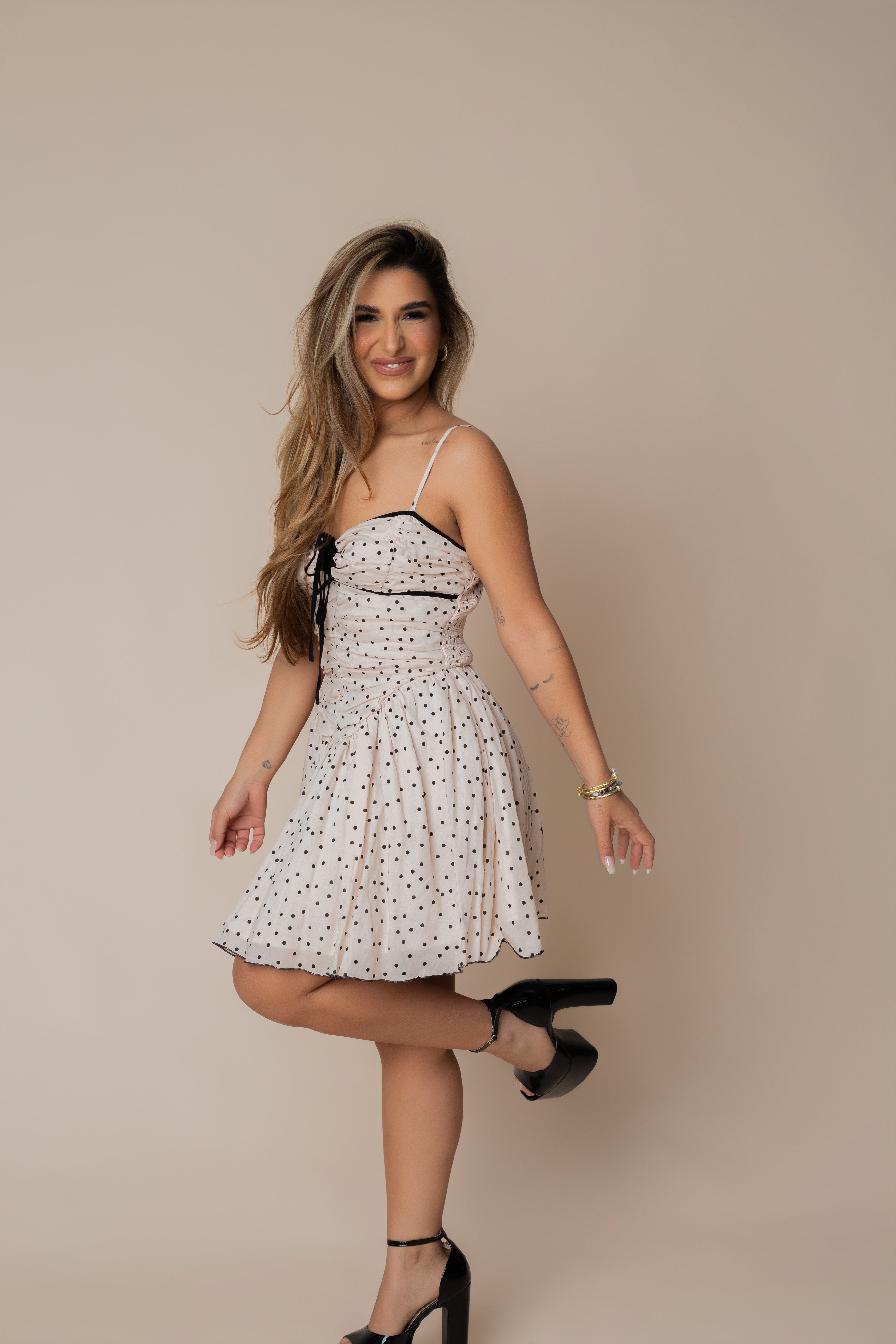 Contrast Dot Smocked Mini Dress With Tie Front.