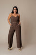 Twill Faux Gold Chain Belted Smocked Jumpsuit.