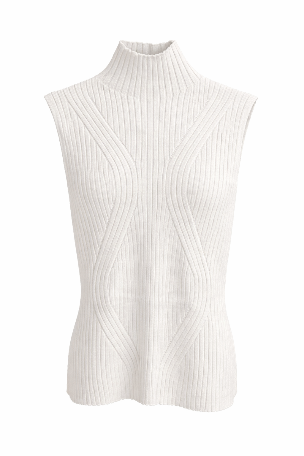 Sleeveless High Neck Rib Sweater Top.