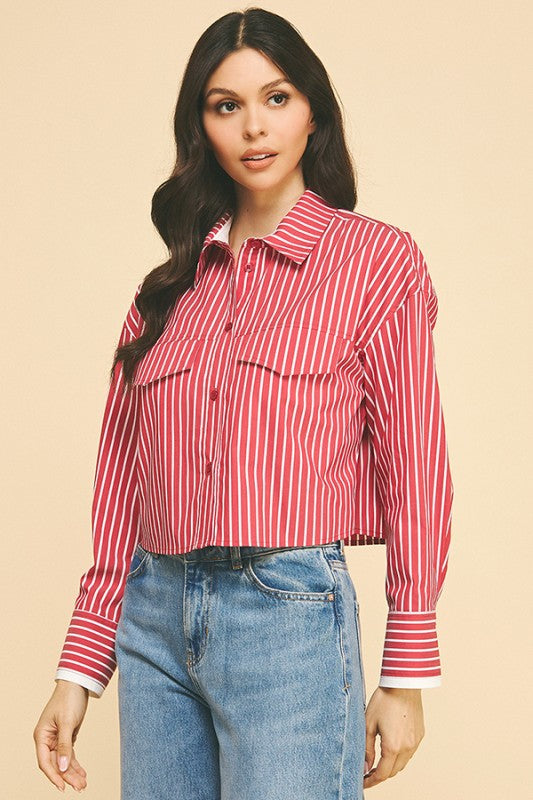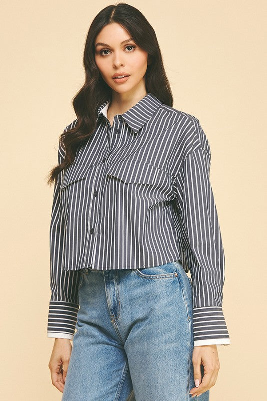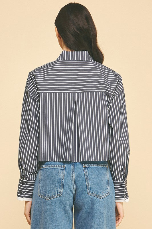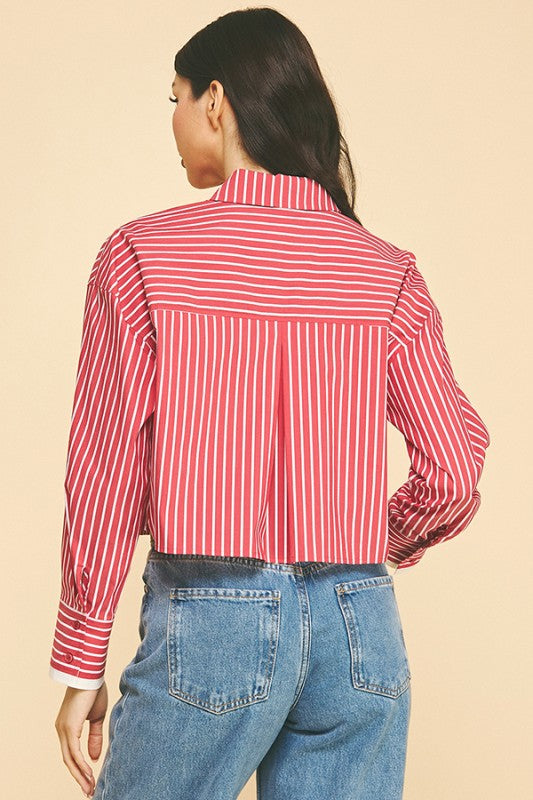 Striped  Oversized Cropped Shirt