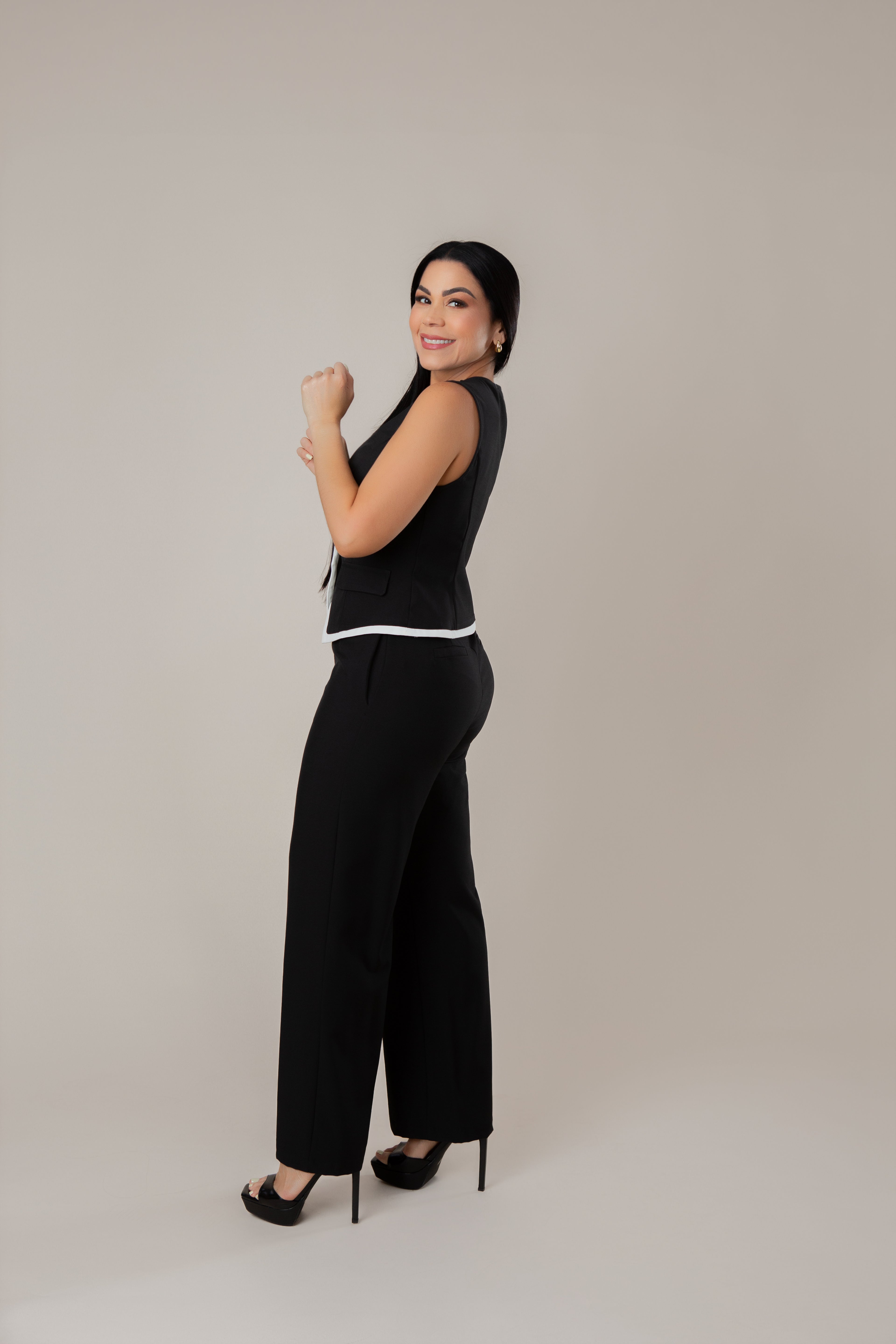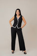 Contrast Trim Cinched Vest With Pants Set.